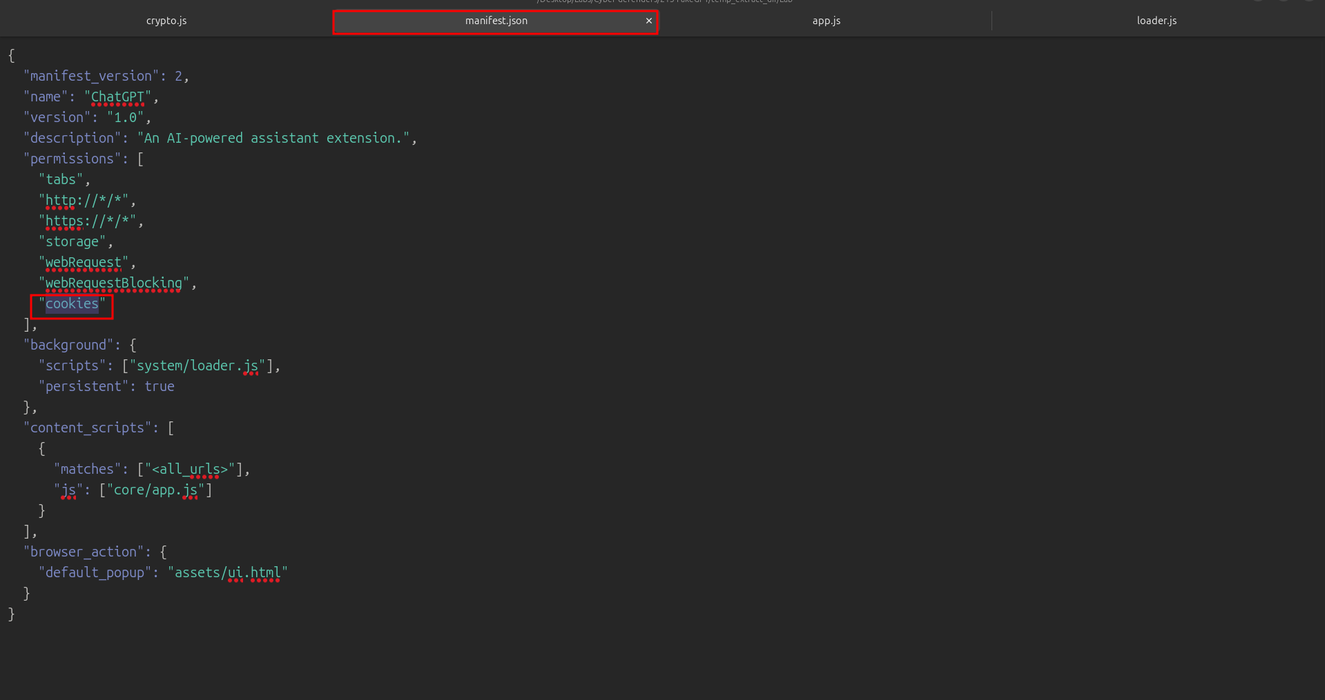 Your task is to perform a thorough analysis of this extension identify its malicious components.