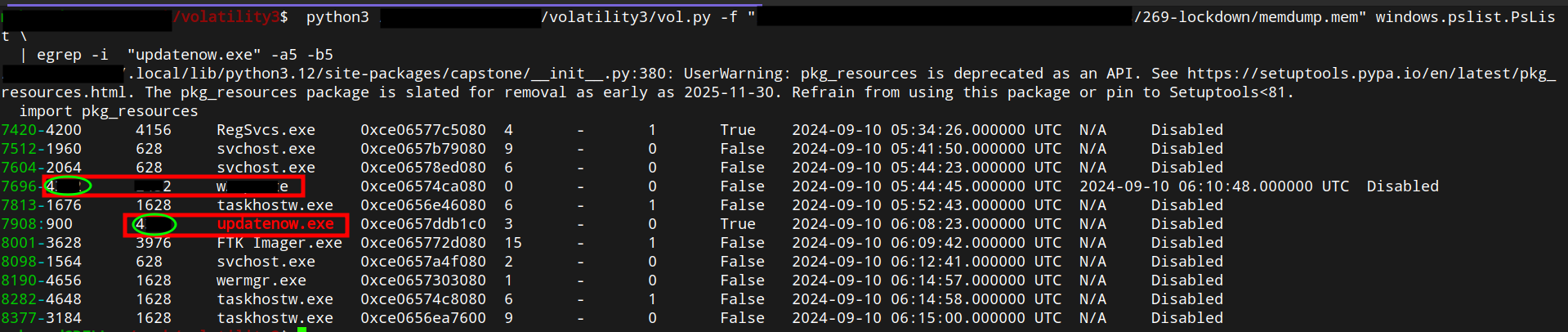 Using Volatility3 with windows.pslist.Pslistand searching for updatenow.exe