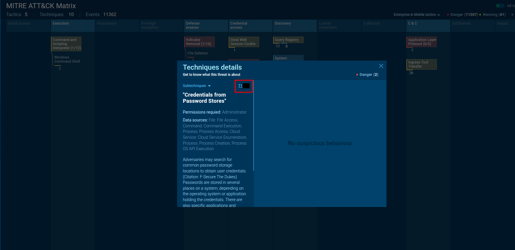 🔹By examining the MITRE ATT&CK techniques displayed in the Any.run sandbox report, identify the main MITRE technique (not sub-techniques) the malware uses to steal the user’s password.